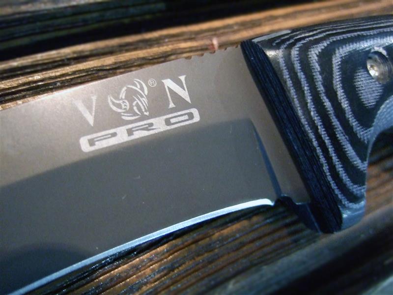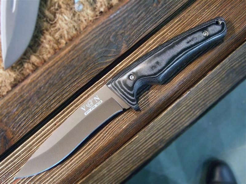 А.Б.: Титановое покрытие клинка. И развитая гарда. И не является холодным оружием. Также вся серия вот этих самых качественных складничков… Это как раз тоже VN-pro. Вот этот сейчас на конкурс отдадим тоже - EDC-найф - недорогой нож и при этом с прекрасным аксисом, опять же G10.