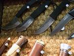А.Б.: Честные рабочие ножи. Вот ручной работы тоже ножи. То есть «Витязь» ручной работы, а там уже дороже, и сталька там получше. Вот еще у нас целая серия «металок». Была первая серия, вторая серия, теперь третья уже с совсем другим дизайном тоже разработаны «металки»