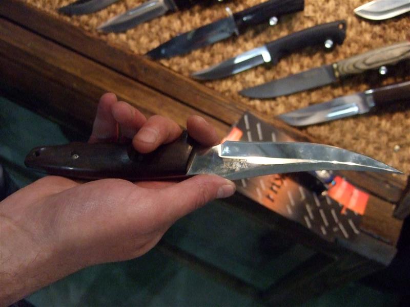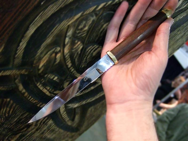 А.Б.: Потому что, вот новая фирма, которая вышла с новыми ножами. Ну вот все хорошо, качество хорошее, но дизайн такой убогий - мне даже захотелось принести и показать им что-нибудь, как можно делать рукоятки, какие. Вот могу вам показать, ради примера-интереса.