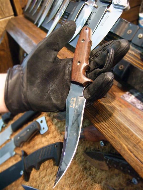 А.Б.: Хорошо, запросто. Ну у нас как... Мы сейчас новинку например сделали. Я разработал нож очень интересный. Ну, то есть, нож вот «Ягуар» был, хит уже просто многолетний.