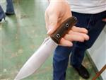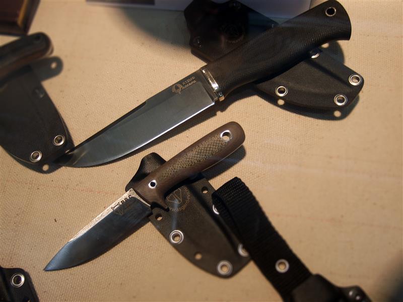 М.М.: Такие вот нарезки используем… А дерево и кожаные ножны – это не то, что уже наша история, но тем не менее, отходит в прошлое. Мы стараемся более новые технологии использовать. Стали сейчас: немецкая 440C+, опять же немецкая D2. Сложные дорогие стали типа порошковых «тридцатки», «тройки», BG42 – это на заказ. Серийно работаем именно с немецкими. Всем бы хороши наша 95я и наша Х12 – наши – в смысле Российские – но плохо, что нестабильное качество. Т.е. может прийти новая плавка, новый заказ стали, и она будет «плохо себя вести».