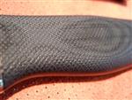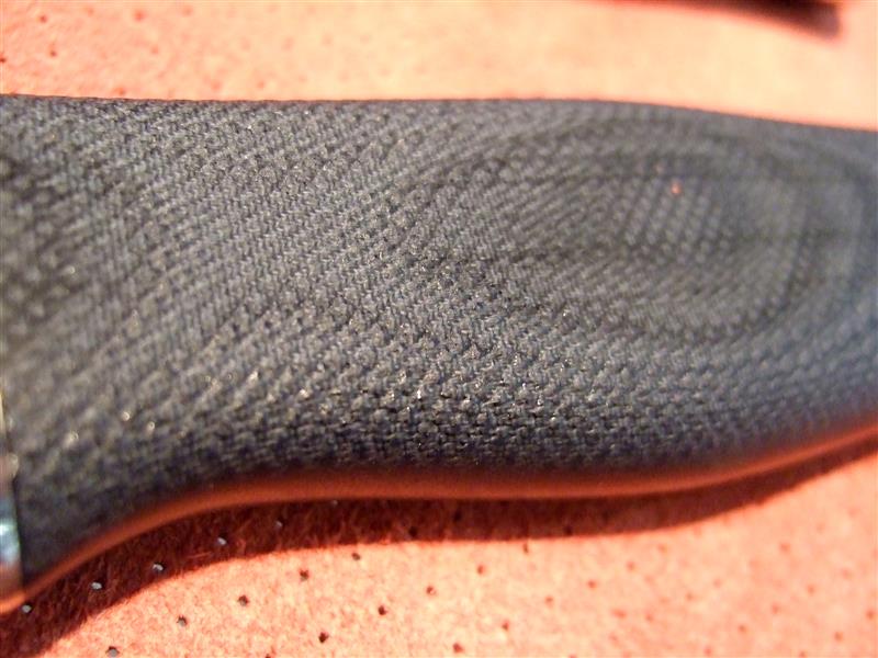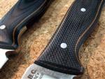 М.М.: В основном по одной. Бывает 1-2. Только вот самых маленьких – представлено 3, был 4й нож. И стараемся отойти сейчас от «дерева». По основной работе мы уже отошли от него, только на заказ деревянные ручки делаем. Сейчас всё микарта. Оружейную насечку вот сейчас разработали хорошую. Попробуйте в руке! Вообще можно и сфоткать крупным планом вместе и насечку и «встречную чешую».