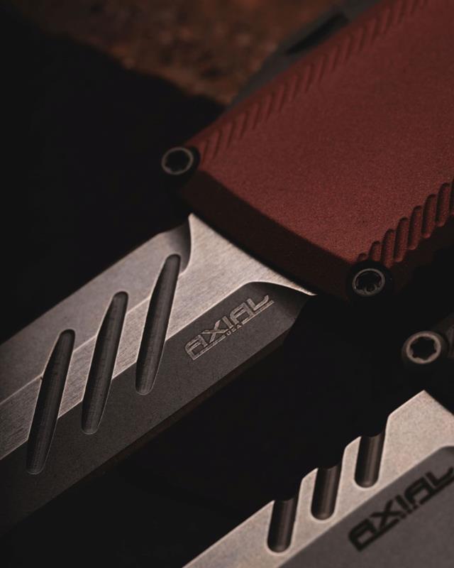 Axial Shift V3 в новой багровой гамме. С удобными насечками. Типа плавный ход клинка взад-назад.