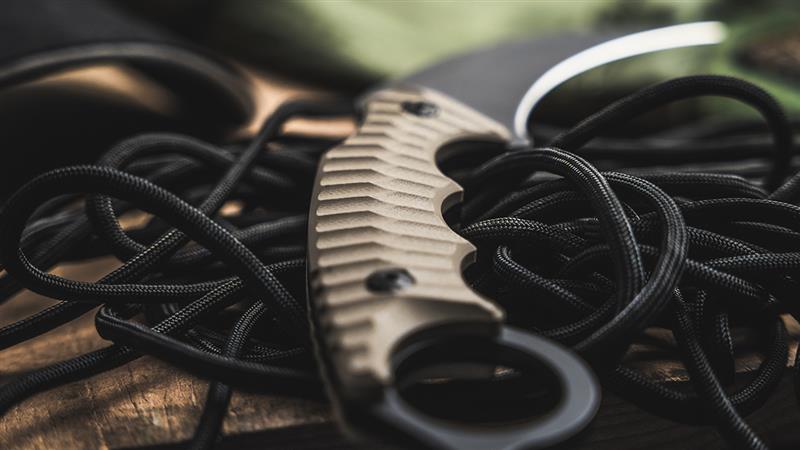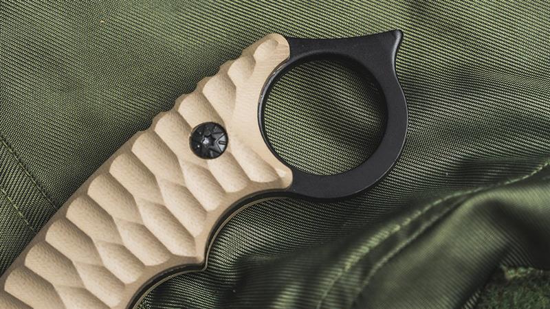 Накладки на рукоять - эргономичный полимер G10 цвета хаки.