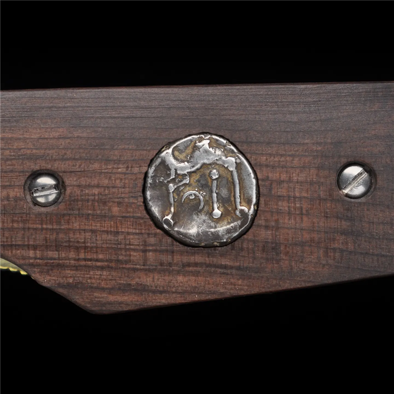 Он, в отличие от микартовой серийки, богат на рукоять из морёной дубовой древесины с ирландских земель, в которую вставлена кельтская серебряная монета, которой больше 2000 лет.